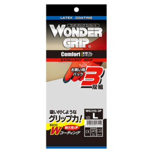 WG310 WONDER GRIP Comfort ワンダーグリップ コンフォート HOME WG310 ワンダーグリップ コンフォート WG310 WONDER GRIP Comfort (ワンダーグリップ コンフォート) 特長 手のひらWコーティングで耐久力アップ。 天然ゴムプレミアムフィニッシュ加工で吸着力、グリップ力に優れています。 ●ワンダーグリップ独自技術「プレミアムフィニッシュ加工」が手のひらに施されており、吸盤のような表面加工が抜群のグリップ力を実現。 ●手のひらWコーティングで耐久性アップ。 素材手の平部分:天然ゴム 手袋繊維:ナイロン カラーレッド サイズ M / L / XL JANコード M : 4518406003106 L : 4518406003113 XL : 4518406003120 3双組 WG310-3P M : 4518406013105 L : 4518406013112 XL : 4518406013129 サイズ表 サイズ 全長 中指の長さ 手の平まわり M 23.5 7.2 16.8 L 24.5 7.6 17.4 XL 25.5 8.0 18.0 EN388に基づいた品質基準 欧州(EN)の統一規格のもと手袋に求められる安全性を表記する基準。 下記の4項目の試験が規定。 WONDER GRIP ブランドトップを見る WONDER GRIP 商品紹介を見る WONDER GRIP 電子カタログを見る