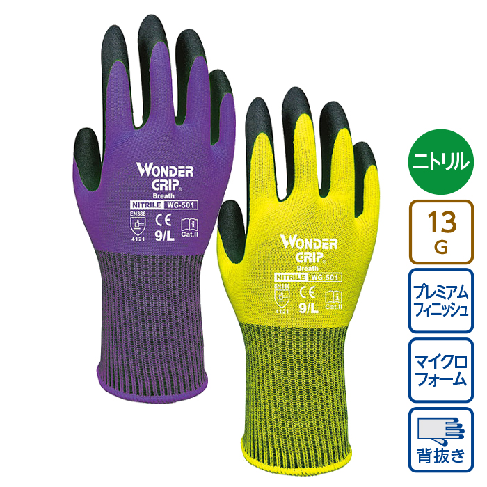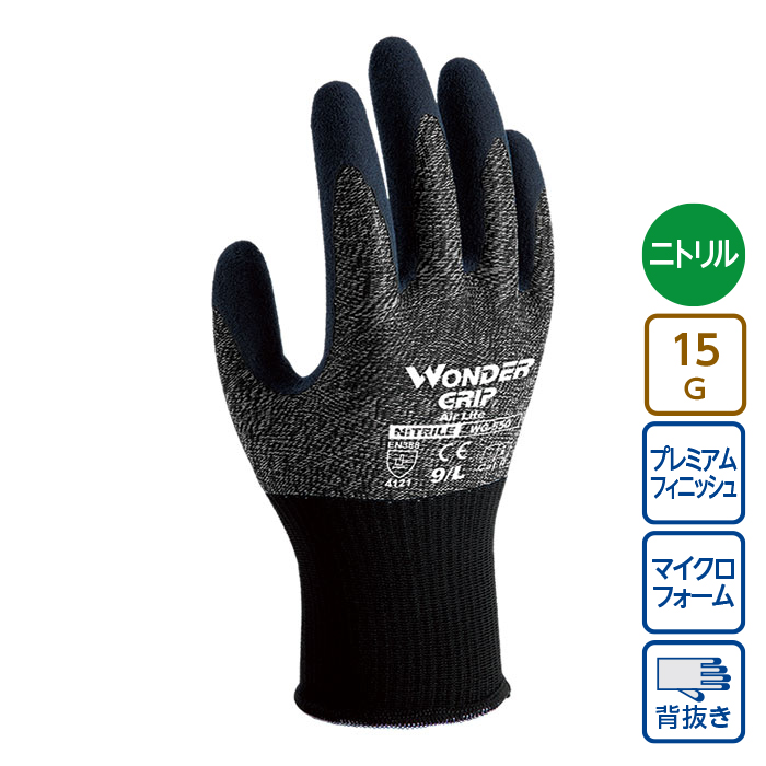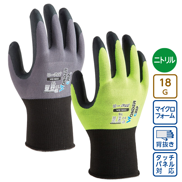 WONDER GRIP ニトリルゴムコーティング手袋 ニトリルゴムコーティング背抜き手袋は、耐油性・耐摩耗性に優れ、通気性も確保。精密作業や機械整備、軽作業に最適で、快適な装着感が特長です。 HOME WONDER GRIP ーニトリルゴムコーティング手袋 WONDER GRIP – ニトリルゴムコーティング手袋 WG1855 ワンダーグリップ ユーフィール 詳細を見る WG1850 ワンダーグリップ フレックス18 詳細を見る WG550 ワンダーグリップ エアライト 詳細を見る WG555 ワンダーグリップ デュオ 詳細を見る WG500 ワンダーグリップ フレックス 詳細を見る WG501 ワンダーグリップ ブレス 詳細を見る WG513 ワンダーグリップ ニトフリーダム 詳細を見る WG518W ワンダーグリップ オリバ 詳細を見る WG658BU ワンダーグリップ オイルガード 詳細を見る WONDER GRIP ブランドトップを見る WONDER GRIP 商品紹介を見る WONDER GRIP 電子カタログを見る