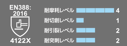 欧州(EN)の統一規格のもと手袋に求められる安全性を表記する基準。