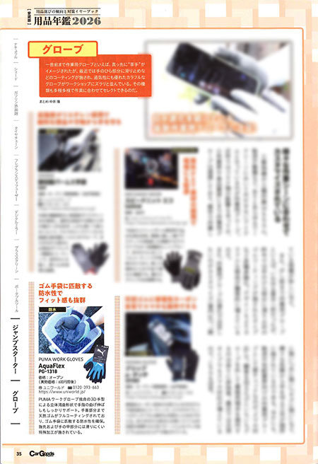 マーケットの先端をキャッチする大特集「用品年鑑」記事にて、「PUMA WORK GLOVES」の以下商品が掲載されております。
